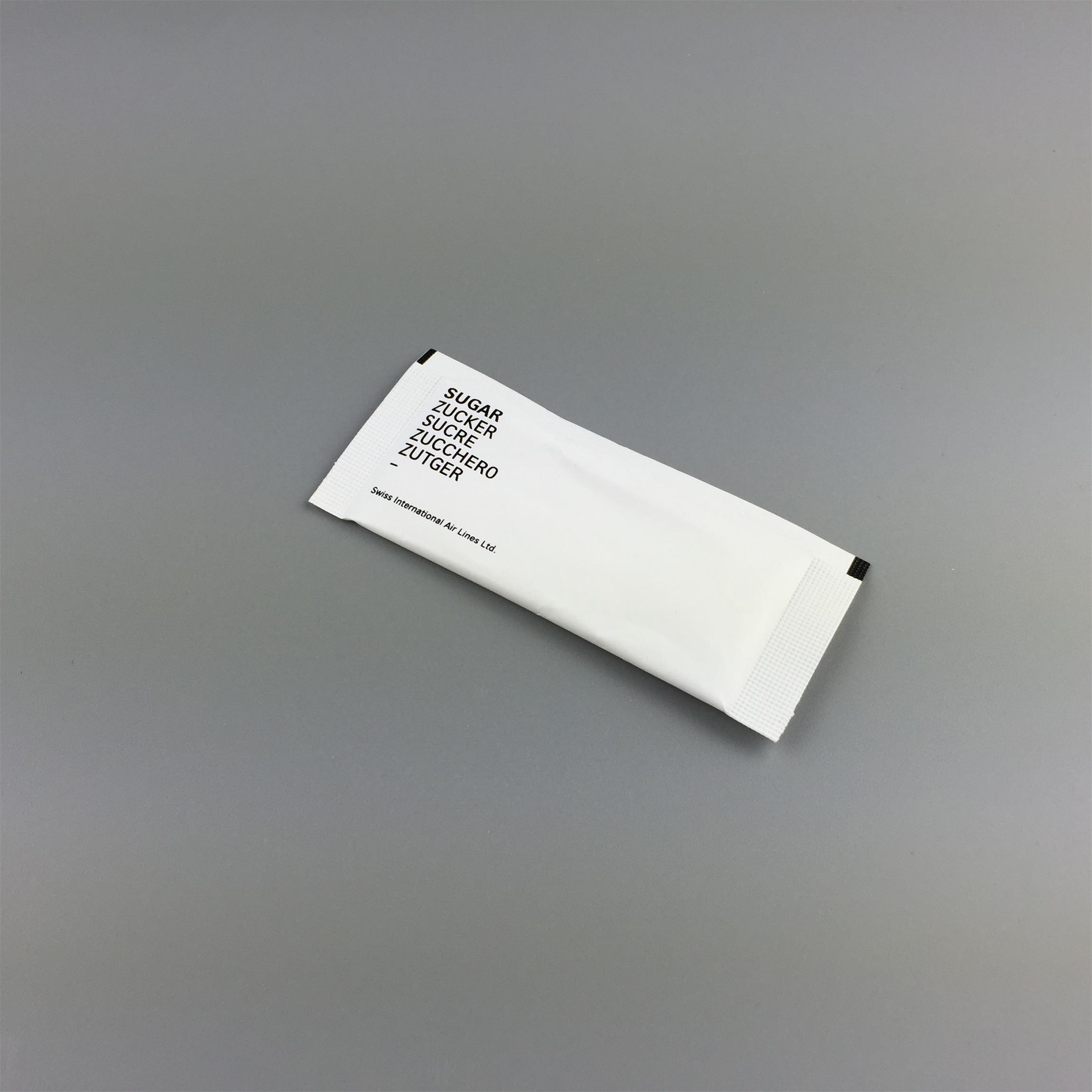 Condiment:sugar Packing:coated paper Size:9*4cm Weight:4g Color: white Shape:dried power Flavour:pure sweet Providing OEM service Certificate:FDA, HACCP, ISO, QS,SGS,EU